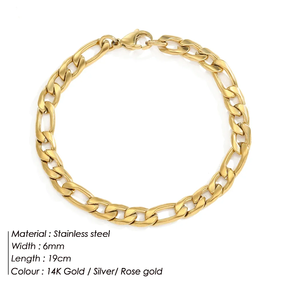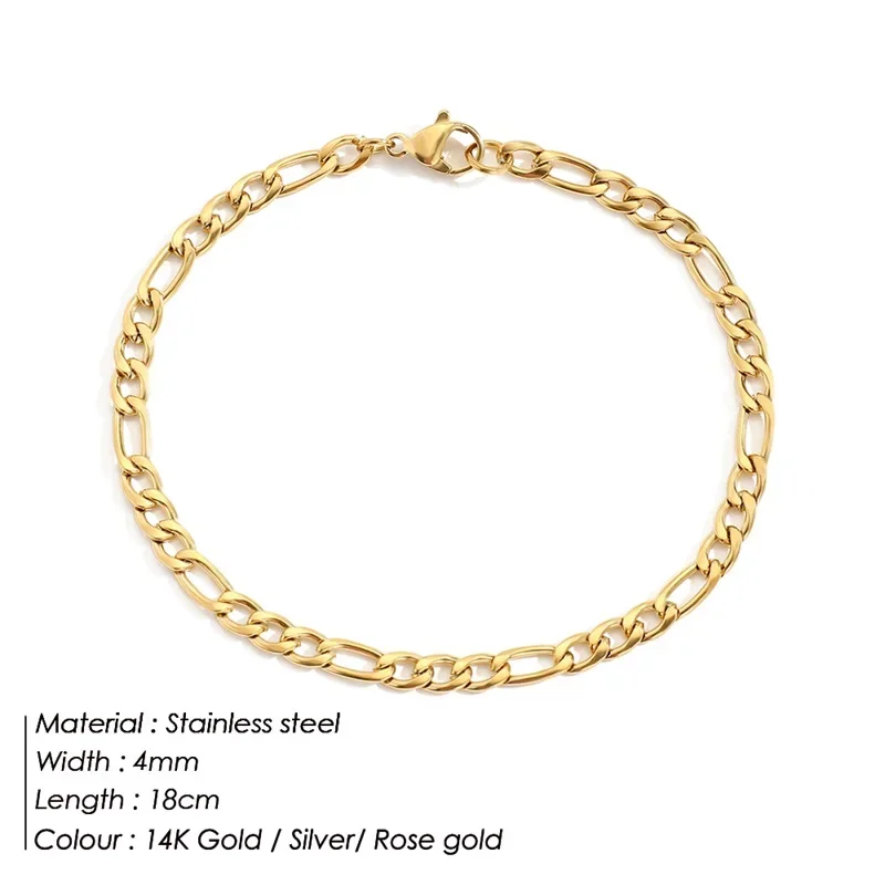 Couple Bracelet 4/6/8mm Figaro Chain Love Gift Men Jewelry Stainless Steel Party Accessories Women Stacking Bracelets